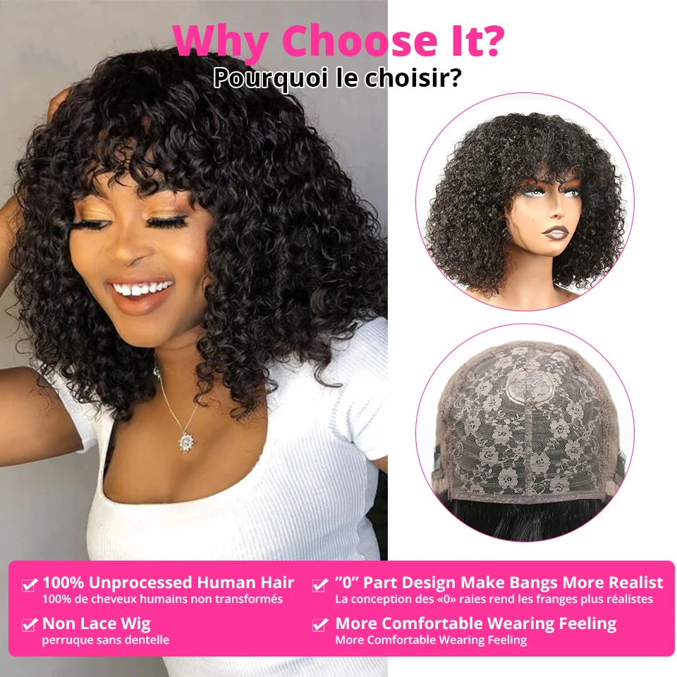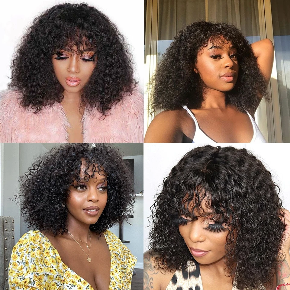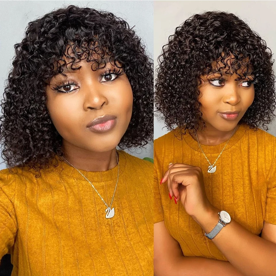 Кудрявые Парики Cexxy Jerry из натуральных волос с челкой, парики полностью машинного изготовления, плотность 250%, парики для женщин, перуанские, 100% неповрежденные человеческие волосы