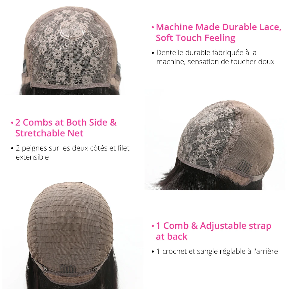 Плотность: плотность 250%Цвет: Естественный цветДлина парика: Доступно 12 дюймовШапка парика: дышащая сетчатая шапкаМетод изготовления: парики машинного производства, парики без шнурка спередиПреимущества: мягкий, удобный, длительный срок использования, простота установки и восстановления