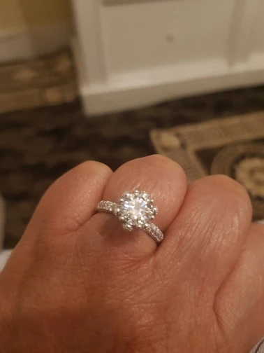 Кольцо просто огонь! Очень красиво и аккуратно сделано, точно соответствует описанию, неимоверной красоты, шикарный дизайн, 10 звезд за муассанит, такой огромный 11мм, соответствует 5 каратам! Просто шикарный камень с солидным сертификатом! Переливается и блестит неземным светом, весь спектр радуги особенно при вечернем освещении. Кто-то рекомендует брать меньше, чтобы было похоже на бриллиант, не надо, так как муассанит - это самодостаточный космический (в прямом смысле) камень, его выращивают в лабораториях, а блестит он ярче бриллианта, да и в других характеристиках мало ему уступает. Камень дорогой, встречается редко, как и карборунд, в магазинах не найти! Долго выбирала в разных ювелирных магазинах, пересмотрела весь Али, но такого размера не нашла ни в одном больше магазине. Серег с муассанитом мало, чтобы камень побольше и застежка английская или итальянская, но больше французские. Очень приветливый и милый продавец! Доставка быстрая! Очень рекомендую!!!