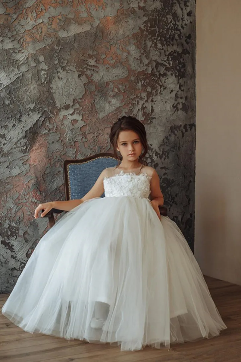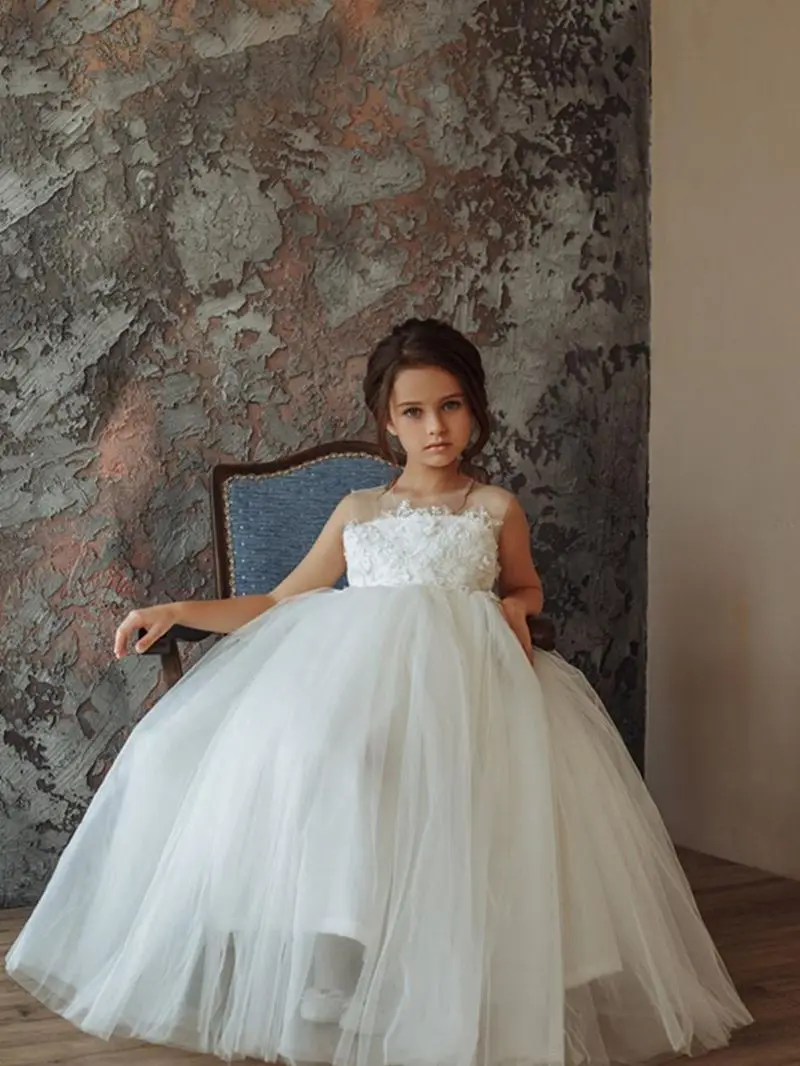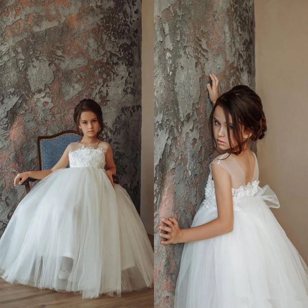 Новое поступление, тюлевые красивые платья цвета слоновой кости для девочек с цветами, мягкое кружевное платье для маленьких девочек, детское кружевное платье, официальная одежда для детей