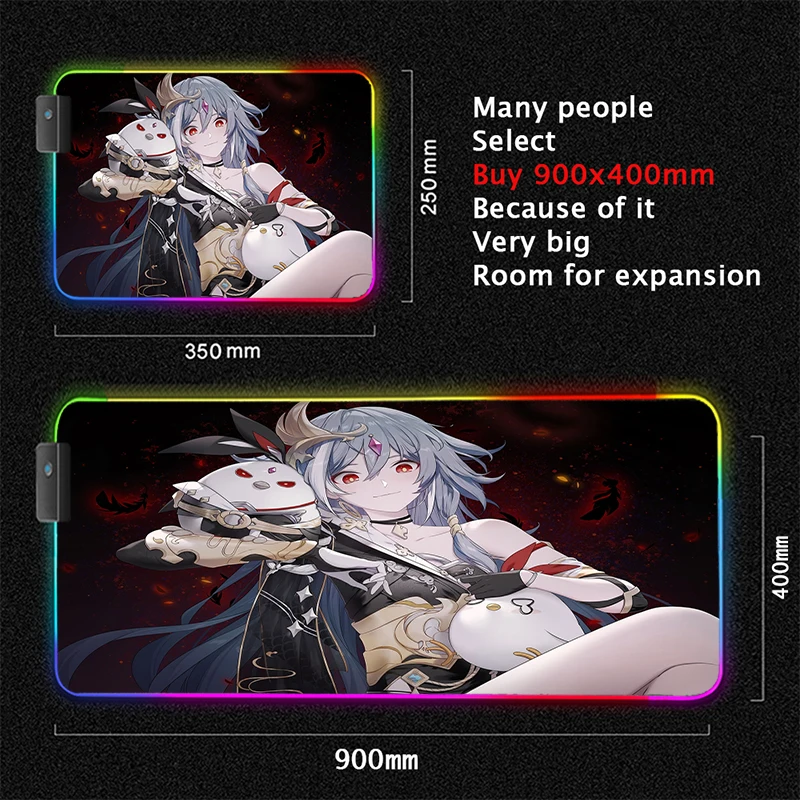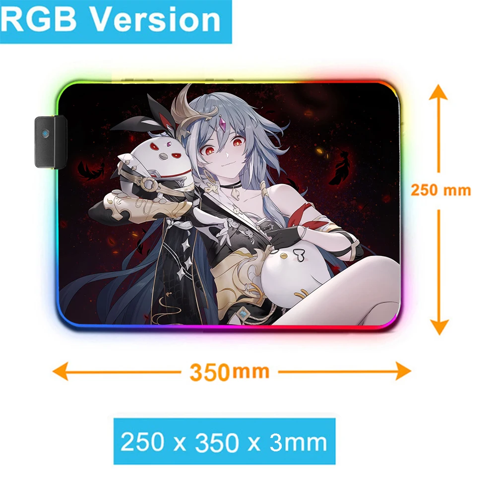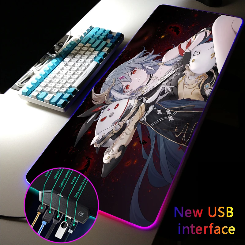 Большой RGB-коврик для мыши MRGLZY Honkai Impact Anime Girl XXL с четырьмя USB-портами, Прямая поставка, коврик для мыши, женский Настольный коврик
