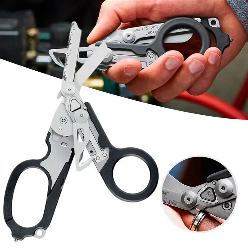 Многофункциональные ножницы Raptor для экстренного реагирования с ремешком, резаком и выключателем стекла, черные с ремешком, резак, безопасный молоток, Лидер продаж 2021