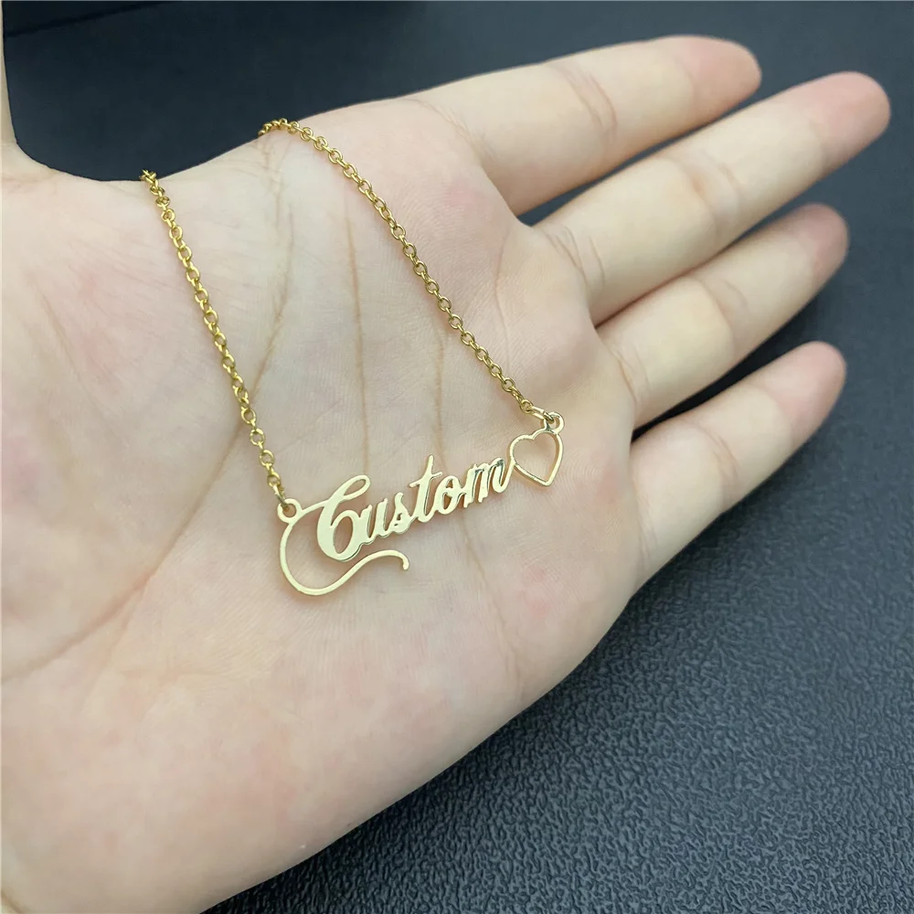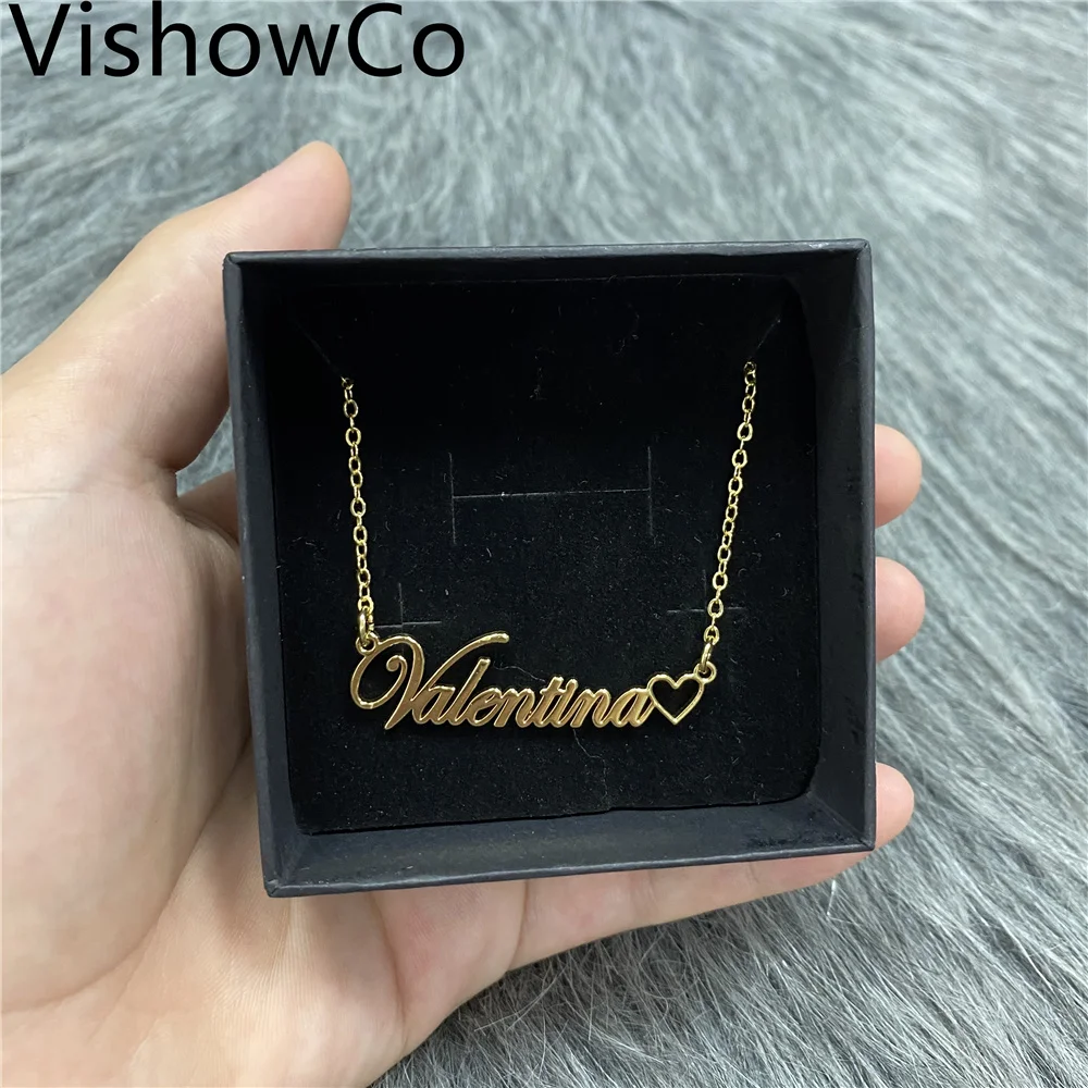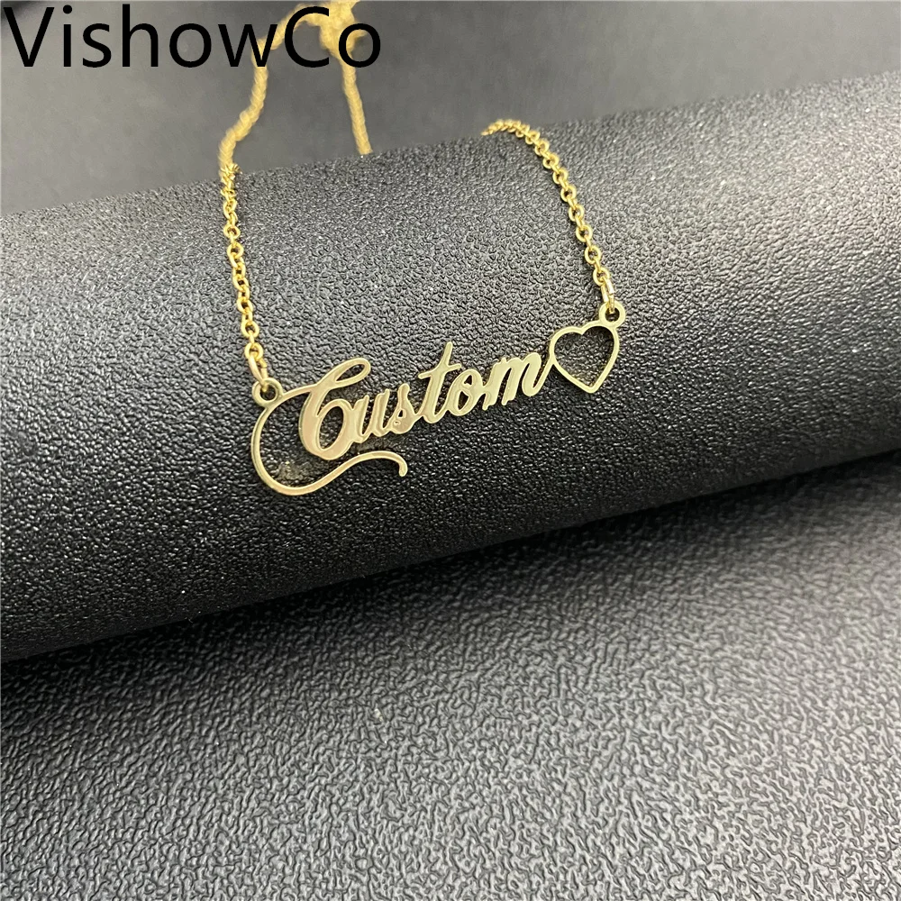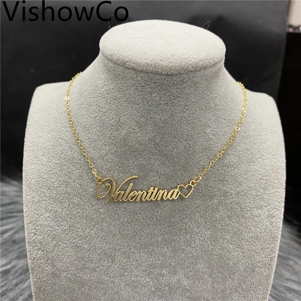 Ожерелье с именем на заказ VishowCo, чокер из нержавеющей стали под золото, ожерелье с именем сердца кулон-табличка с именем для женщин, подарок