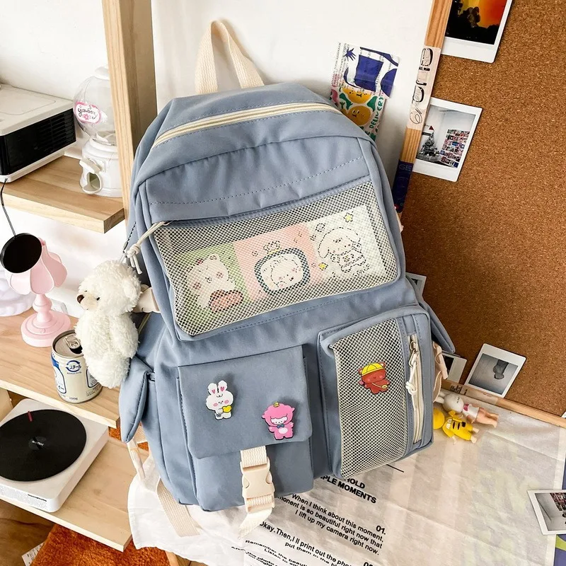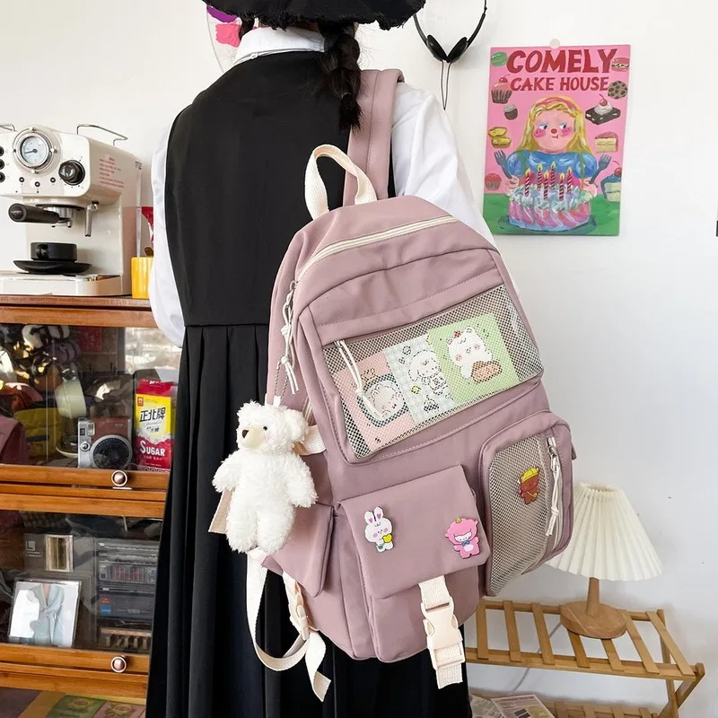 2021 женский рюкзак с пряжкой и значком, Модный милый школьный ране...