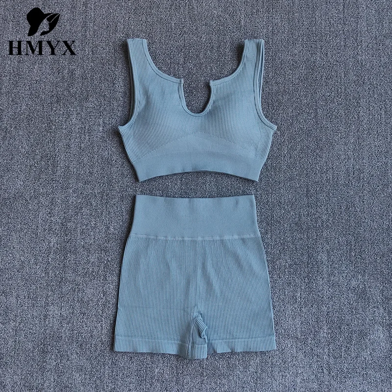 Женский комплект из 2 предметов с шортами и высокой талией для йоги, бесшовный спортивный костюм, одежда для тренажерного зала, женский спортивный бюстгальтер, леггинсы для тренировок в рубчик