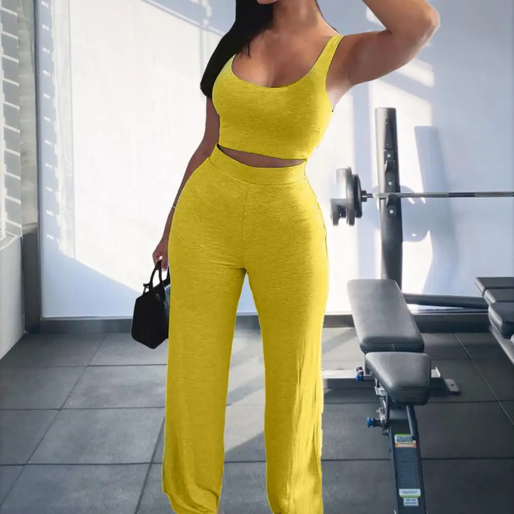 Женский комплект из топа без рукавов и расклешенных брюк, летний женский комплект из 2 предметов, кофта и брюки с высокой талией, спортивный костюм, уличный Женский комплект