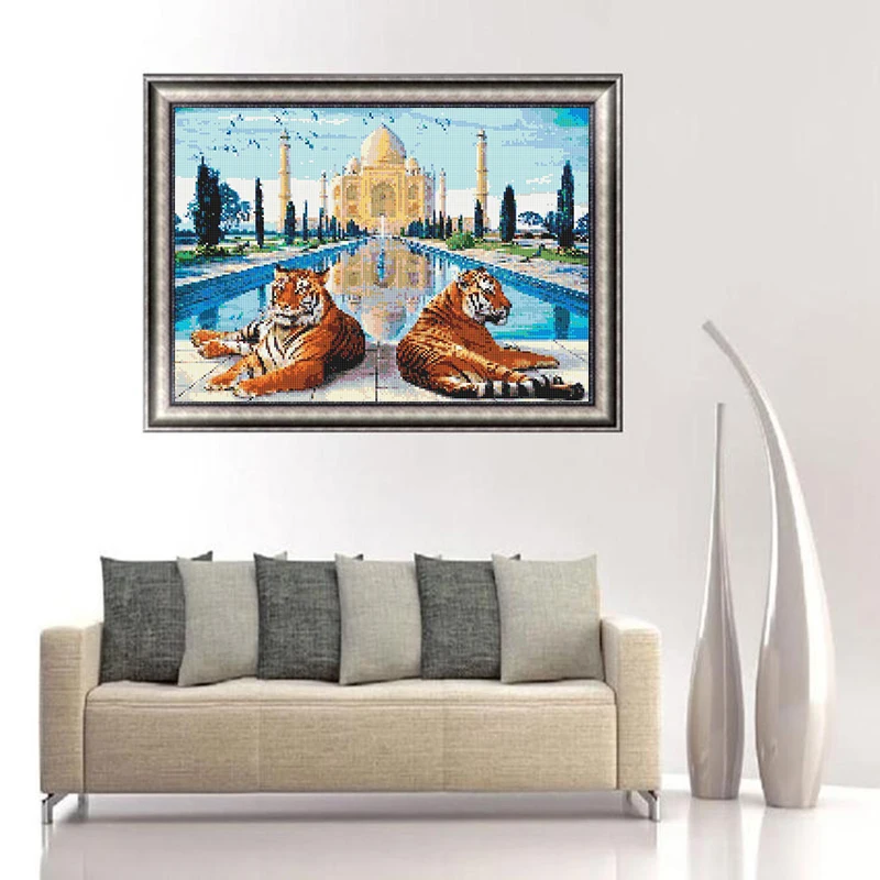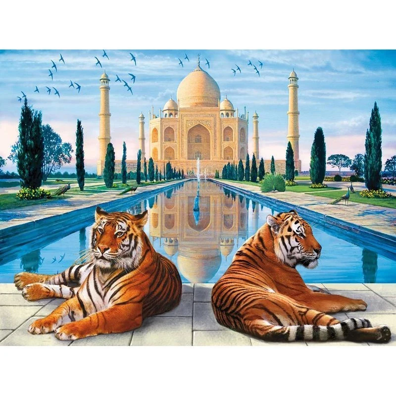 Картина 5D "сделай сам" с изображением Тадж-Махала, тигра, квадратная или круглая, мозаика ручной работы, подарок, вышивка крестиком, украшение для дома
