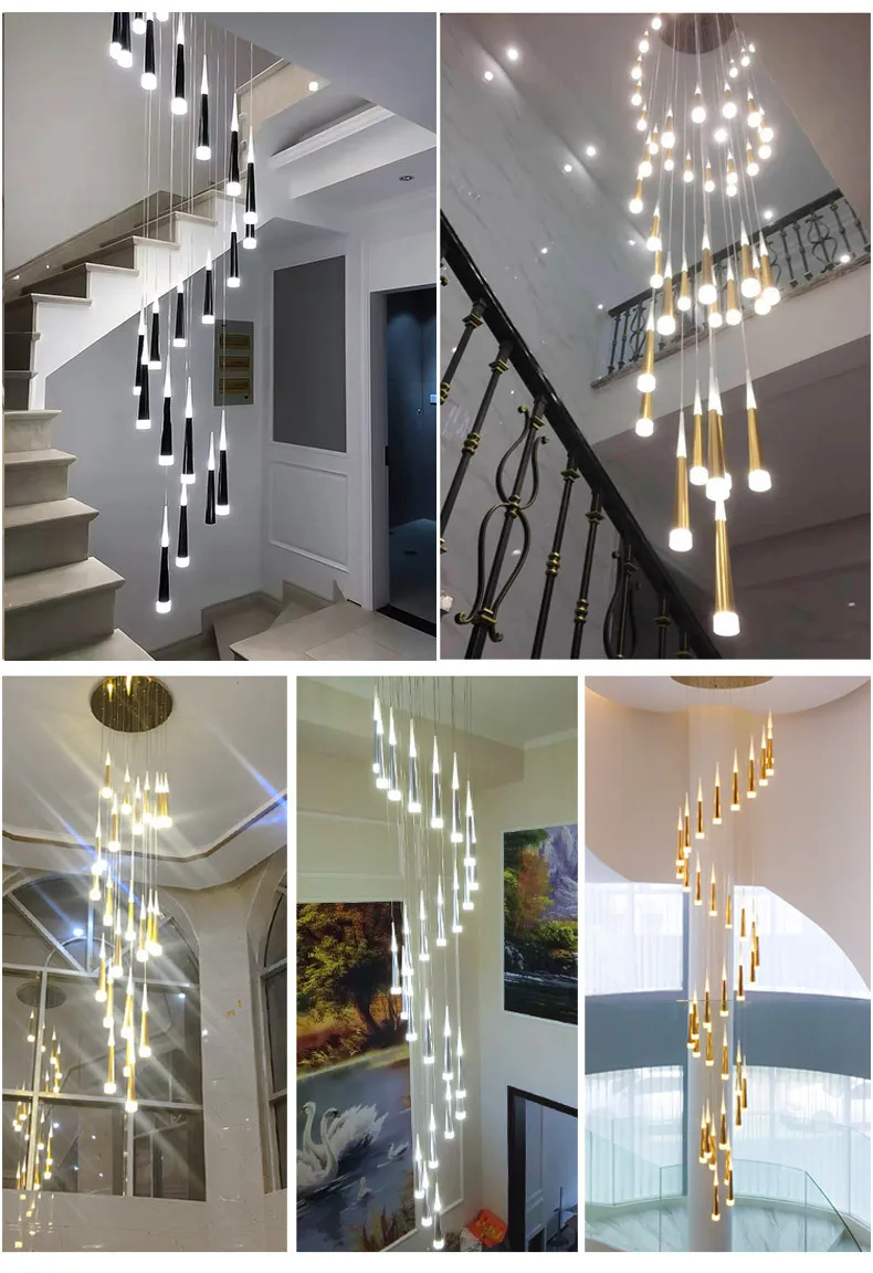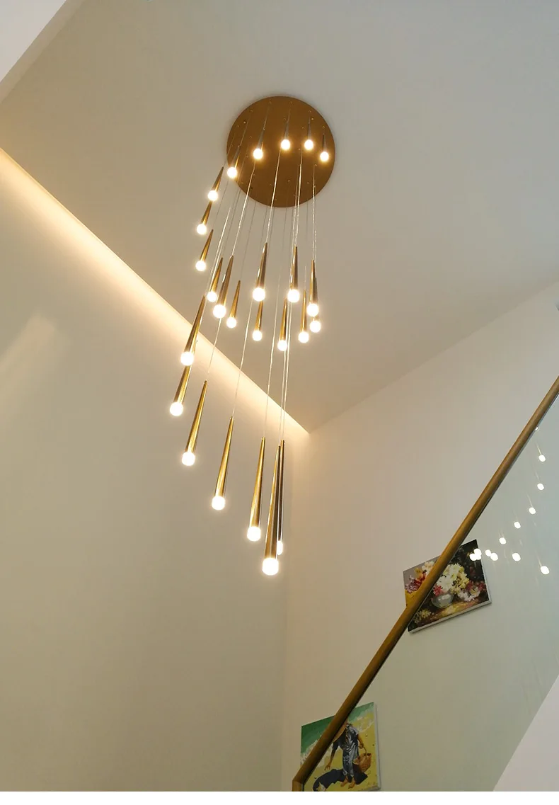 Современная лестница, люстра для дуплексной гостиной, спальни, скандинавского ресторана, кухни, чердака, вращающаяся длинная люстра