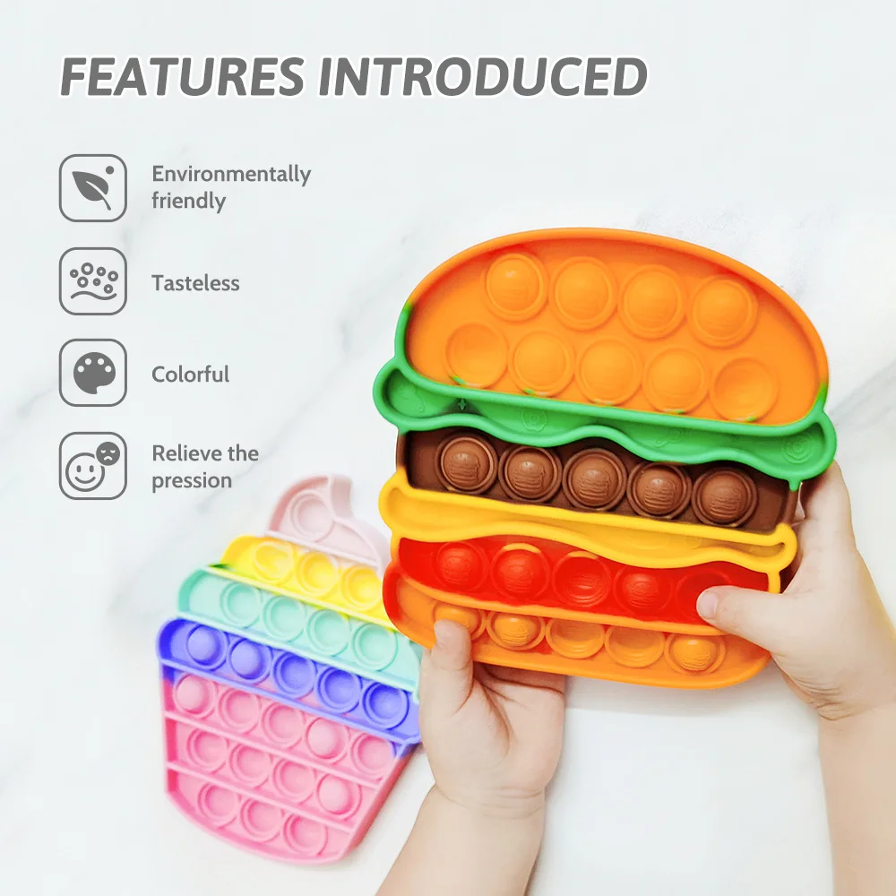 Характеристики продукта:Продукт изготовлен из высококачественного пищевого силикона и получил соответствующие сертификаты проверки качества. Нетоксичный и безвкусный, и может быть очищен кипятком. Различные яркие цвета легко получить любимый для детей.При нажатии на пузырь будет слабый звук. После окончания игры вы можете перевернуть игрушку, чтобы начать следующий раунд игры.Его можно использовать для детей в возрасте до 3 лет, чтобы использовать способность ребенка захватывать предметы. Когда дети играют, они могут осуществлять свое логическое мышление и навыки расчета.