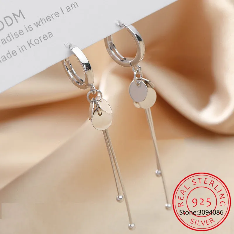 CIAXY 925 Стерлинговое Серебро диск с длинной бахромой серьги для ж...