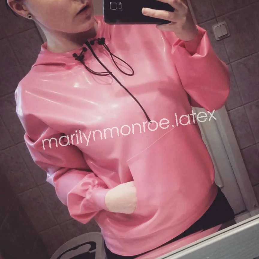 100% латексная резиновая Повседневная Розовая Толстовка Gummi, Удобная верхняя одежда, размер XXS-XXL