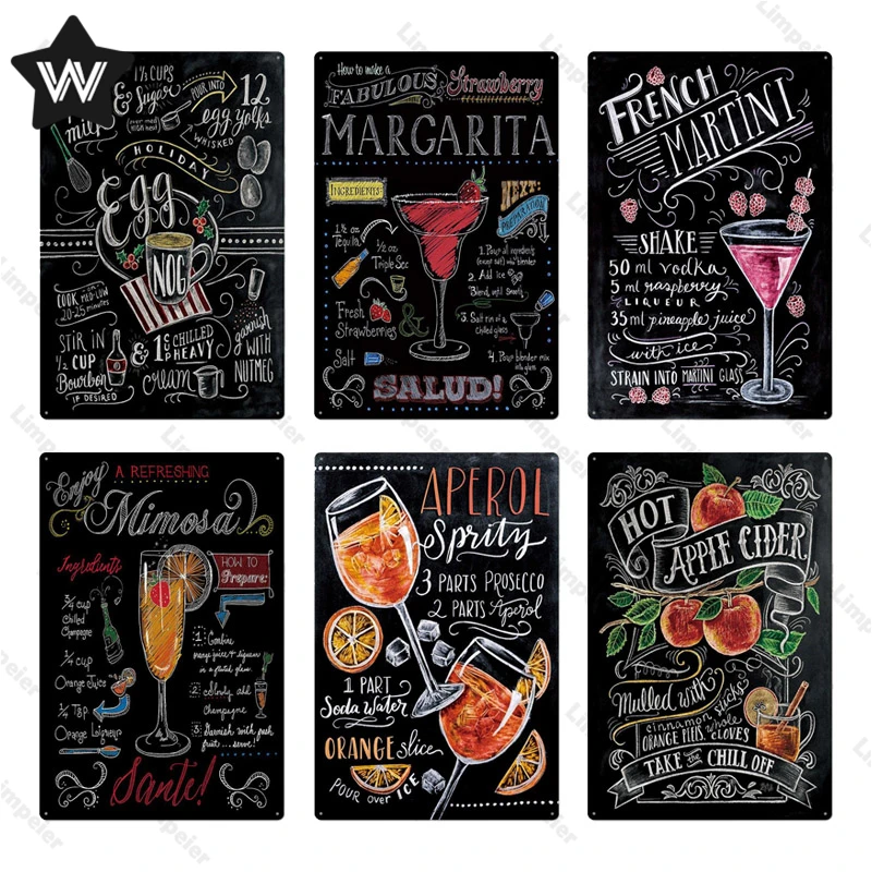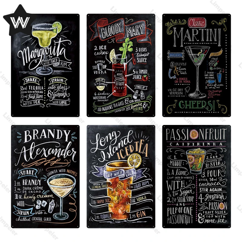 Оловянный постер для коктейлей, Мартини Мохито, металлическая табли...