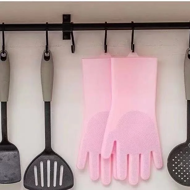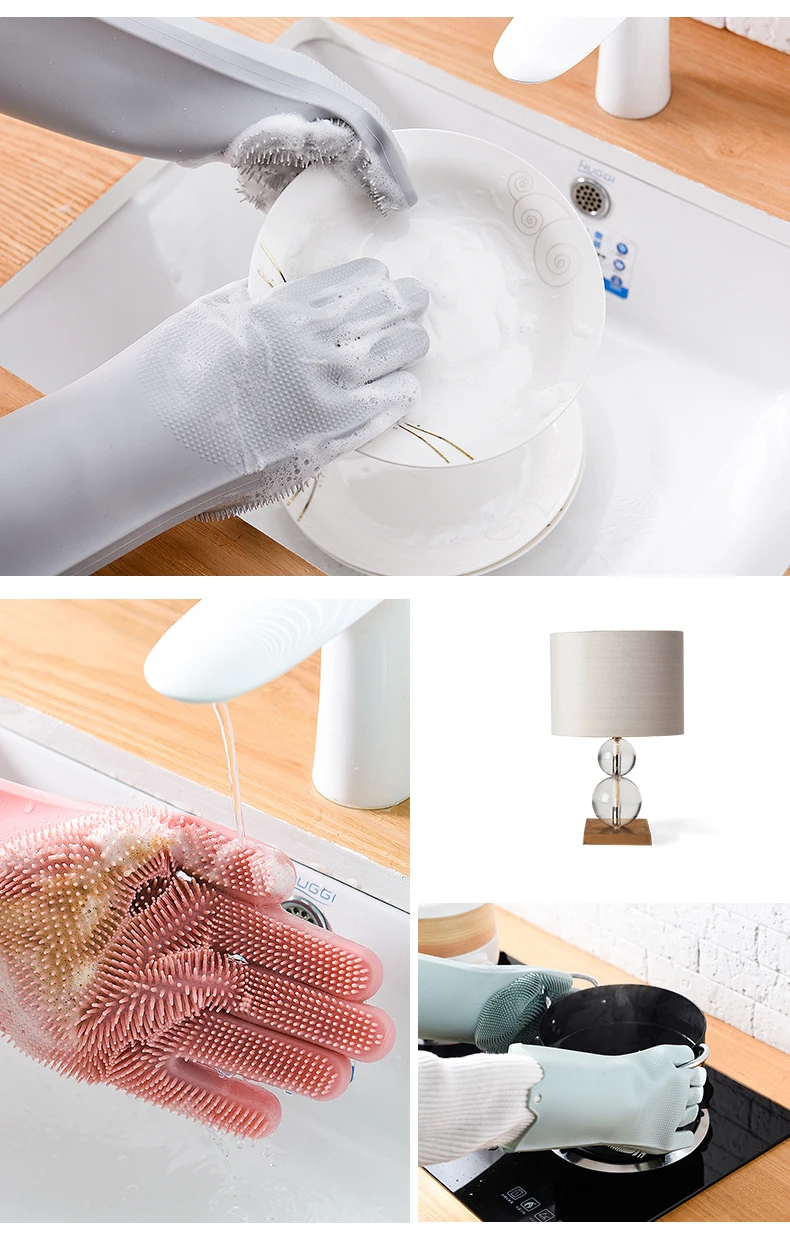 Силиконовые перчатки с посудомоечный скребок для мытья посуды, рези...