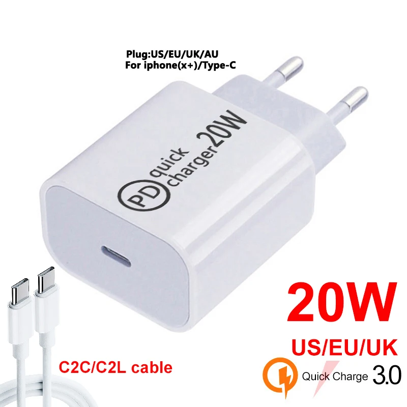Зарядное устройство PD USB C, 20 Вт, QC 3,0, быстрое зарядное устройство для ЕССШАВеликобританииАвстралии, Тип C, зарядное устройство для телефона для iPhone 12 Pro Max, iPad, Huawei, Xiaomi, Samsung