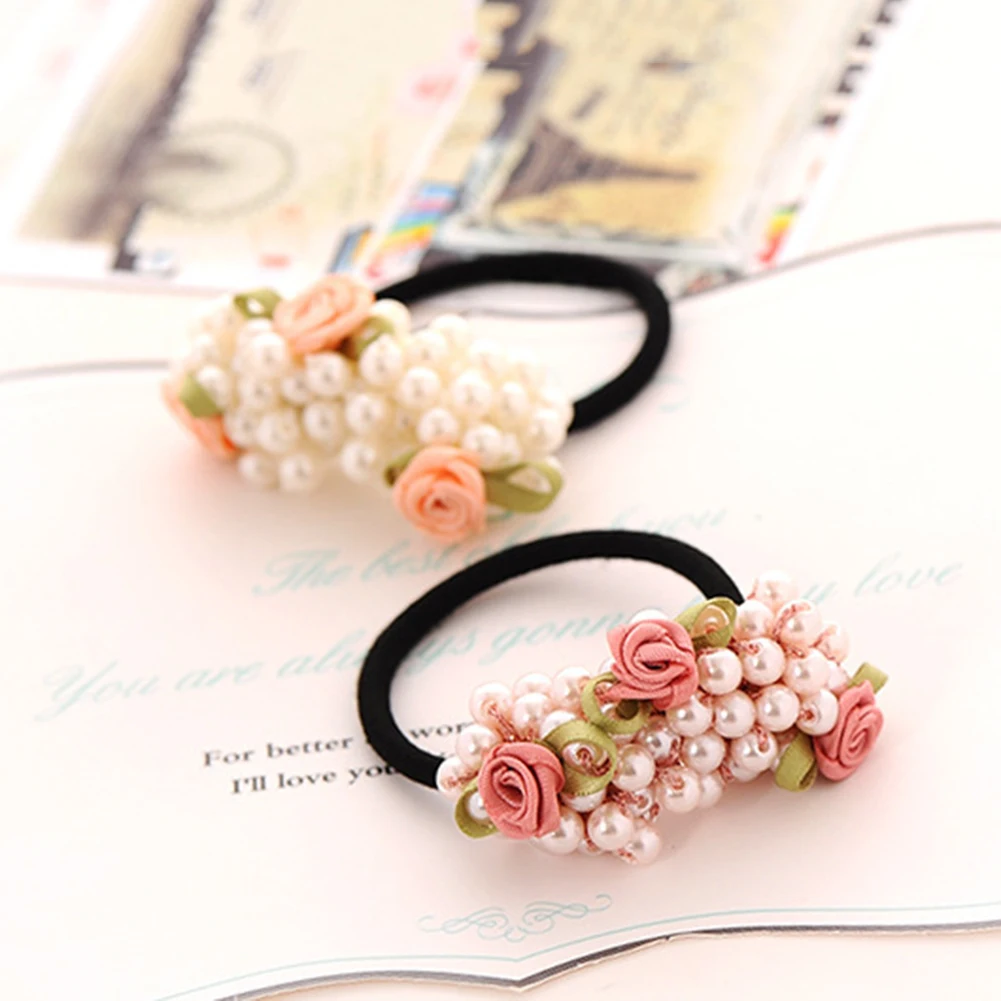 Женская резинка для волос, винтажная эластичная резинка для волос с цветами и жемчужинами
