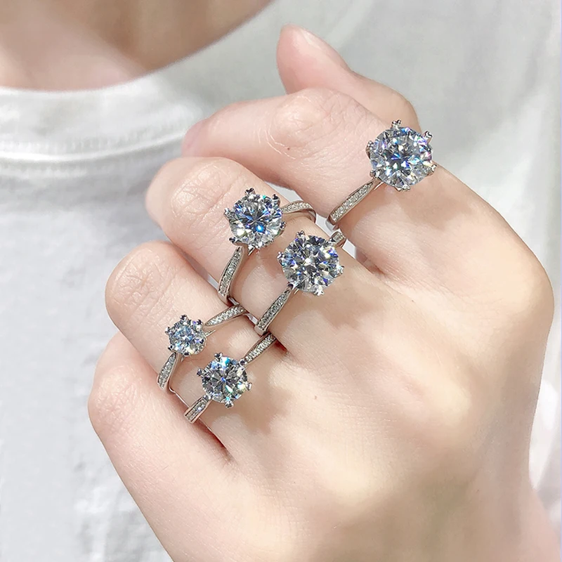Женское кольцо из серебра с муассанитом, 1 карат, 2 карата, 3 карата
