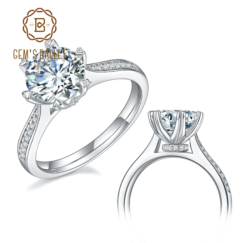 Женское балетное кольцо GEM'S, классическое круглое моиссанитовое к...