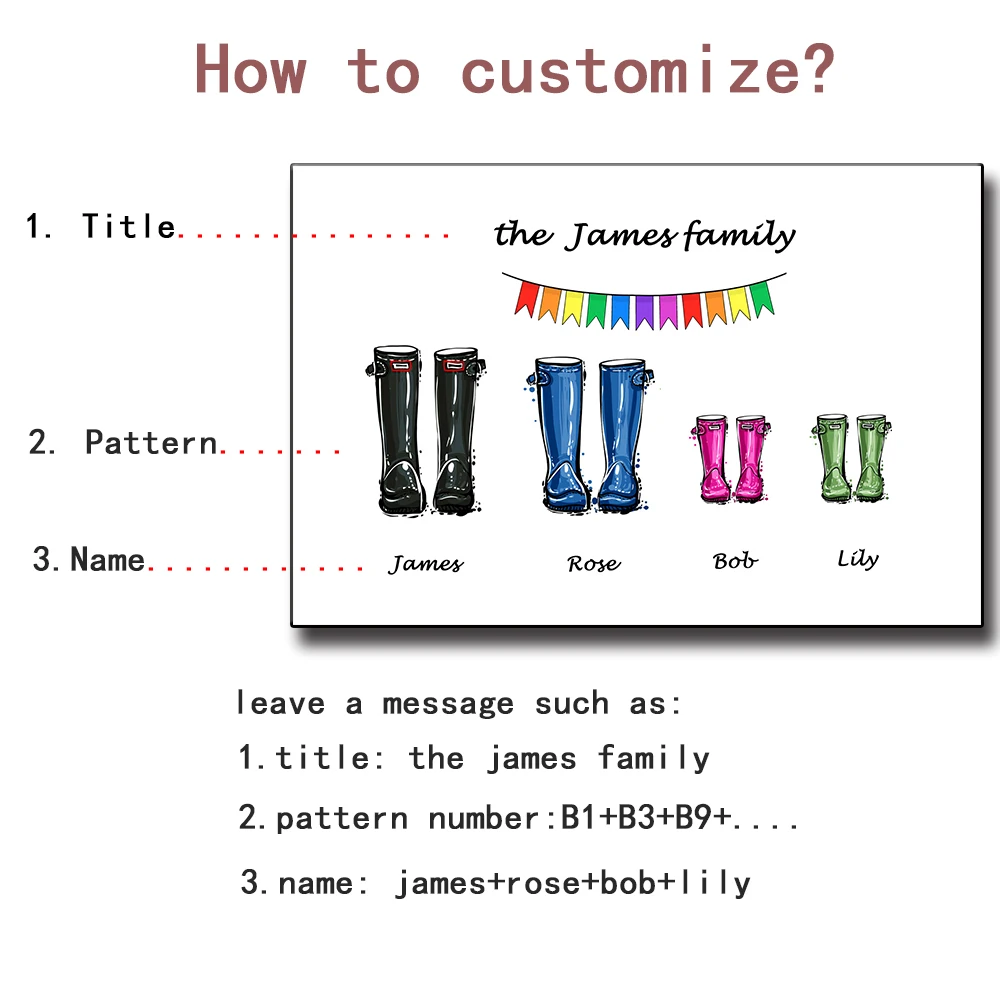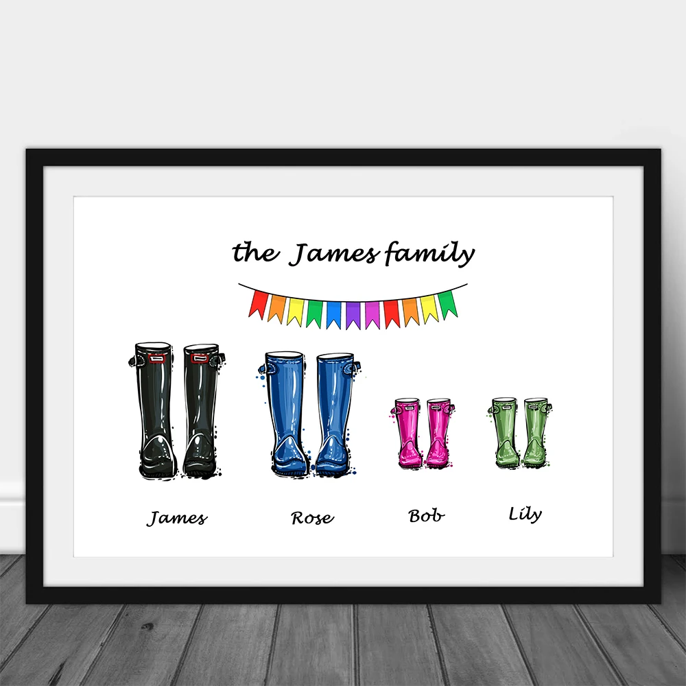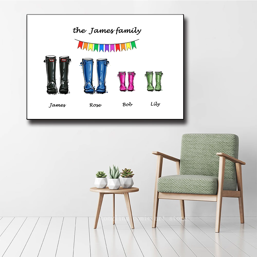 Персонализированный постер с именем семьи на заказ, теплые сапоги из Веллингтона, Современная Картина на холсте, настенные картины для декора гостиной