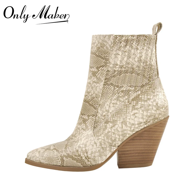 Женские ботильоны без застежек Onlymaker, из искусственной кожи с крокодиловым принтом, с квадратным носком, на толстом каблуке, новые удобные ботинки для вечеринок
