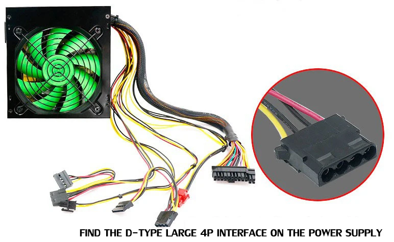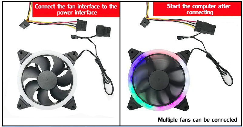 Подключите интерфейс вентилятора к интерфейсу питанияЗапустите компьютер после подключенияМожно подключить несколько вентиляторов