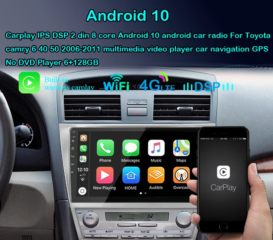 6 + 128G Carplay android автомобильное радио для Toyota camry 6 40 50 2006-2011 Мультимедиа Видео плеер Автомобильный навигатор GPS No 2din 2 din dvd