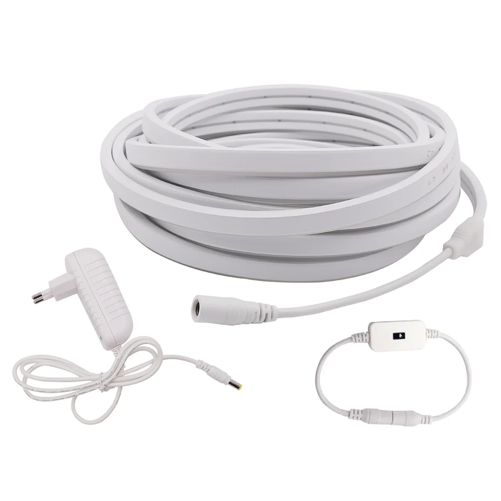 Тип: гибкий светодиодный неоновый ремешокВходное напряжение: DC12VТип вилки: штепсельная вилка европейского стандартаСветильник Цвет: теплый белый/красный/зеленый/синий/розовый/желтыйПолоса Длина: 0,5 м/1 м/2 м/3 м/4 м/5 мНеоновый Размер: 6 мм X 12 ммВодонепроницаемый: водонепроницаемый IP67Можно резать единица измерения-сантиметр 2,5 см (на маркировку интервалы)Угол луча: 120 градусовДлительный срок службы:> 50000 часовТип затемнения: Сенсорное Затемнение/ручной переключатель затемнения/регулятор затемненияСветодиодный диммер-это контроллер, который может регулировать яркость, вы можете настроить светильник на соответствующий светильник яркости ing в соответствии с вашими фактическими потребностями.