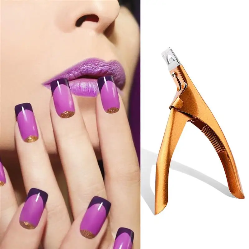 Профессиональные ножницы для ногтей, U-образные прямые ножницы сделай сам с французским кристаллом, поддельные ножницы, инструмент для стрижки