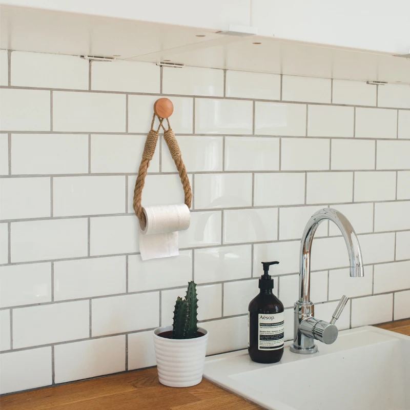 Настенный держатель для рулона туалетной бумаги из пеньковой веревки, ретро вешалка для полотенец для ванной комнаты, декоративная подставка для бумажных полотенец в стиле бохо, декор для ванной комнаты