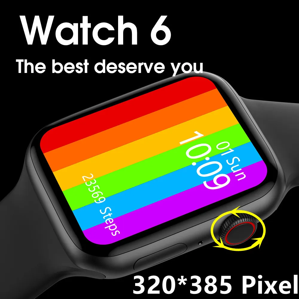 Основные пункты продажи: Bluetooth Вызов, загрузка циферблата, температура тела, частота сердечных сокращений, ЭКГ, кровяное давление, шагомер, фрукты 6-го поколения Размер, сменный ремешок 44 мм, умное клетчатое меню, девять квадратных меню, IP68 водонепроницаемый, поворотная кнопка, Беспроводная зарядка