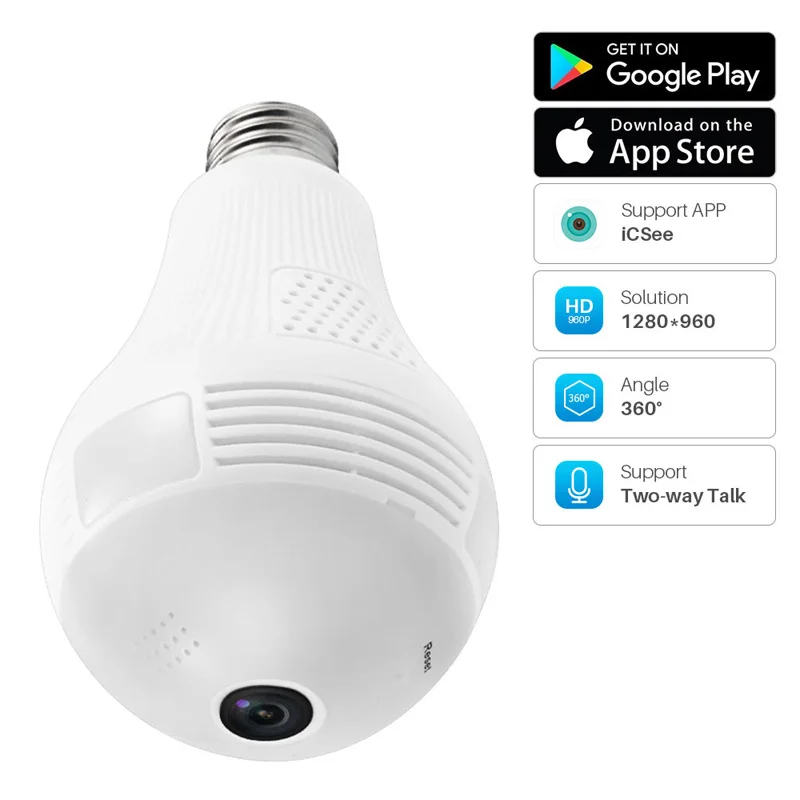 IP-светильник ICSEE, панорамная, HD, 360 , Wi-Fi, 1080P, лампочка, беспроводная, для системы видеонаблюдения рыбий глаз