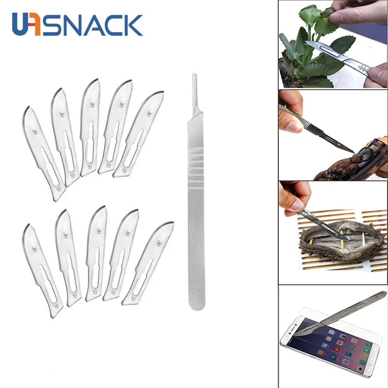 Нож из углеродистой стали хирургические Скальпели, лезвия и рукоятка, скальпель для самостоятельного ремонта печатных плат, нож для животных, ручные инструменты