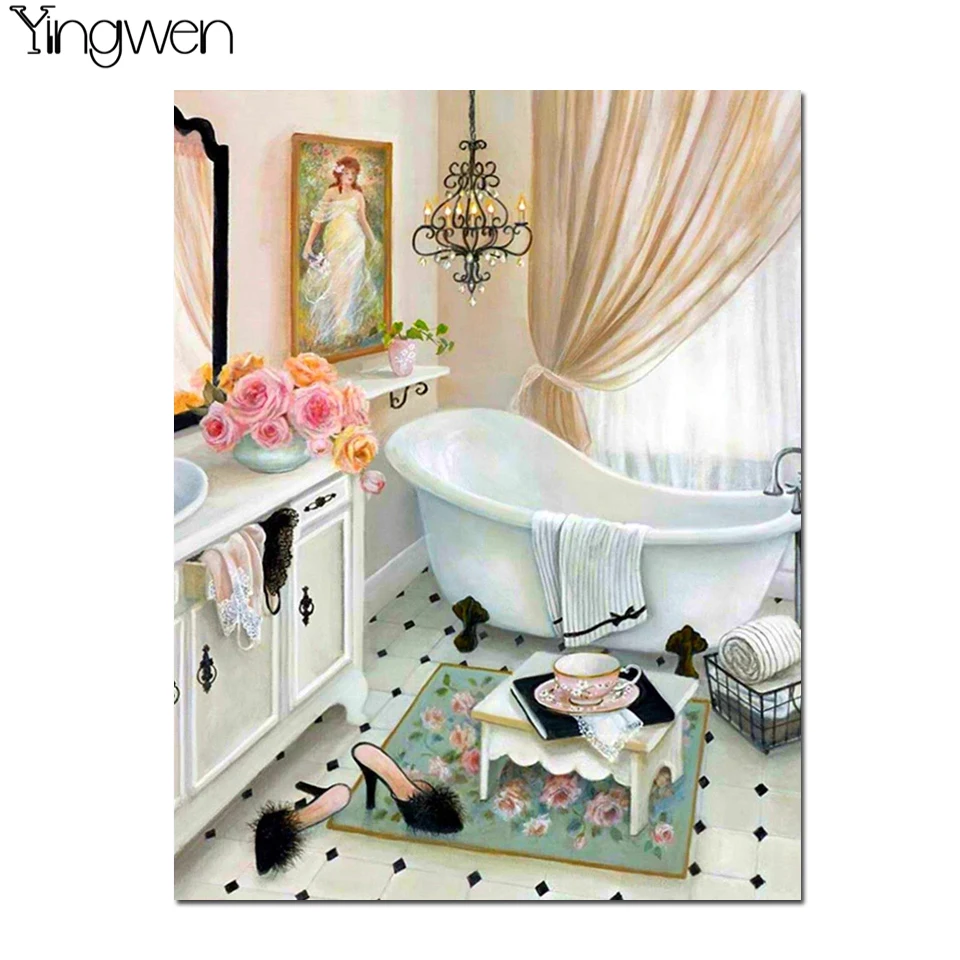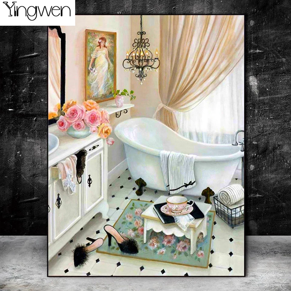 Набор для алмазной вышивки из бисера, мозаика 5D в ванную комнату, пейзаж, полная картина, наборы для вышивки крестиком, настенное украшение для туалета, домашний декор