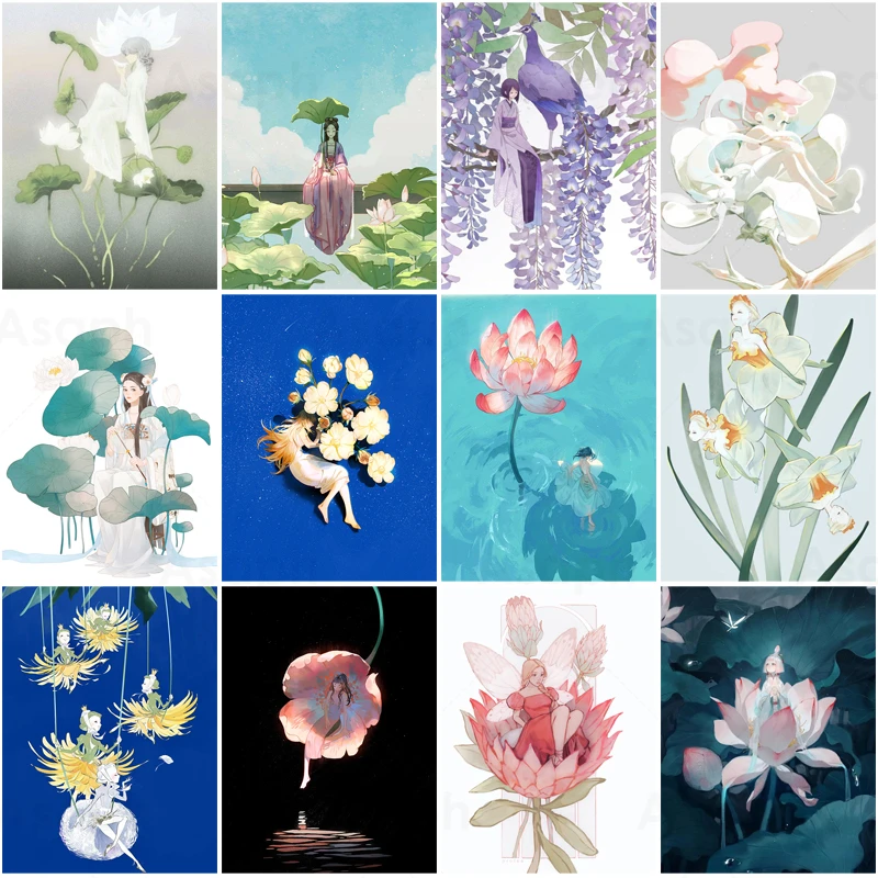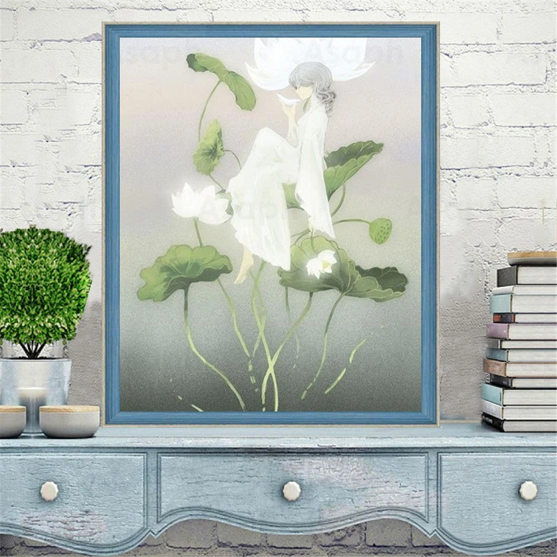 Алмазная картина сделай сам с изображением цветов лотоса, квадратной и круглой формы
