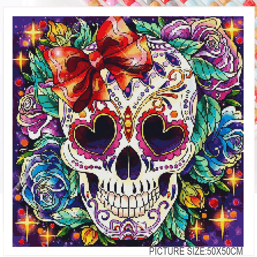 Алмазная 5d картина сделай сам, вышивка с ужасами, цветами, черепами, вышивка крестиком, квадратная Круглая Мозаика, декоративное искусство, хобби, подарок
