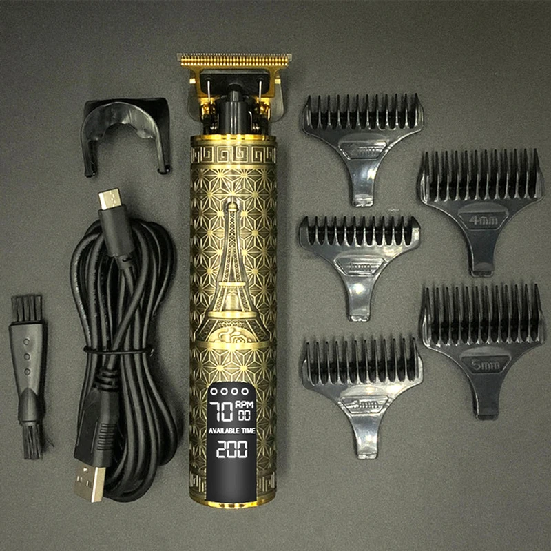 Мужской Электрический триммер для волос T9, профессиональная машинка для стрижки волос, Беспроводная Бритва для бороды, бритва с ЖК-дисплеем, быстрая зарядка, инструменты для укладки, 5