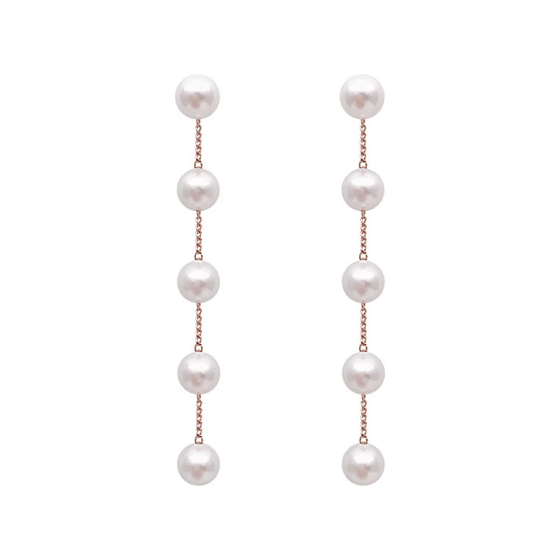 Серьги-кисточки женские, с Белым Круглым жемчугом, свадебные, модные корейские драгоценности