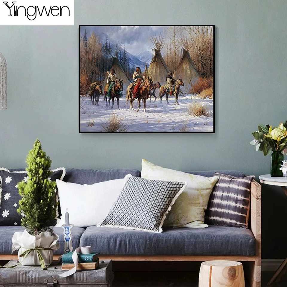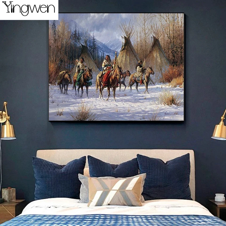 5D Сделай Сам алмазная живопись Родной Индийский лагерь пейзаж полный квадрат круглая дрель вышивка крестом Алмазная вышивка мозаика домашний декор