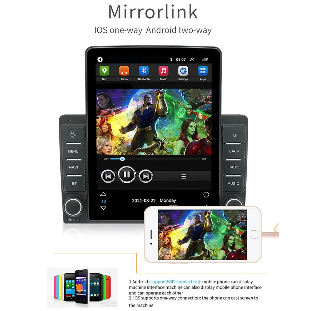 Автомобильный мультимедийный плеер, автомагнитола 2DIN с вертикальным сенсорным экраном, Android 9,5, WIFI, 2 ГБ + 32 ГБ