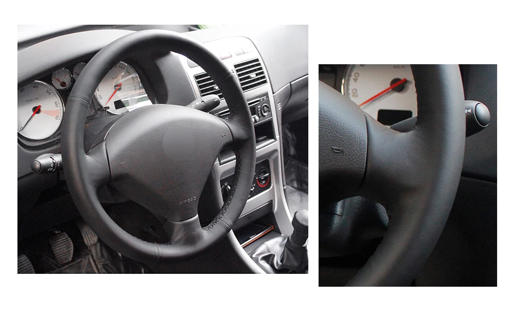 Ручная строчка из искусственной кожи черного цвета для Peugeot 307 20012002-2008 307 SW 2005 2006 2007