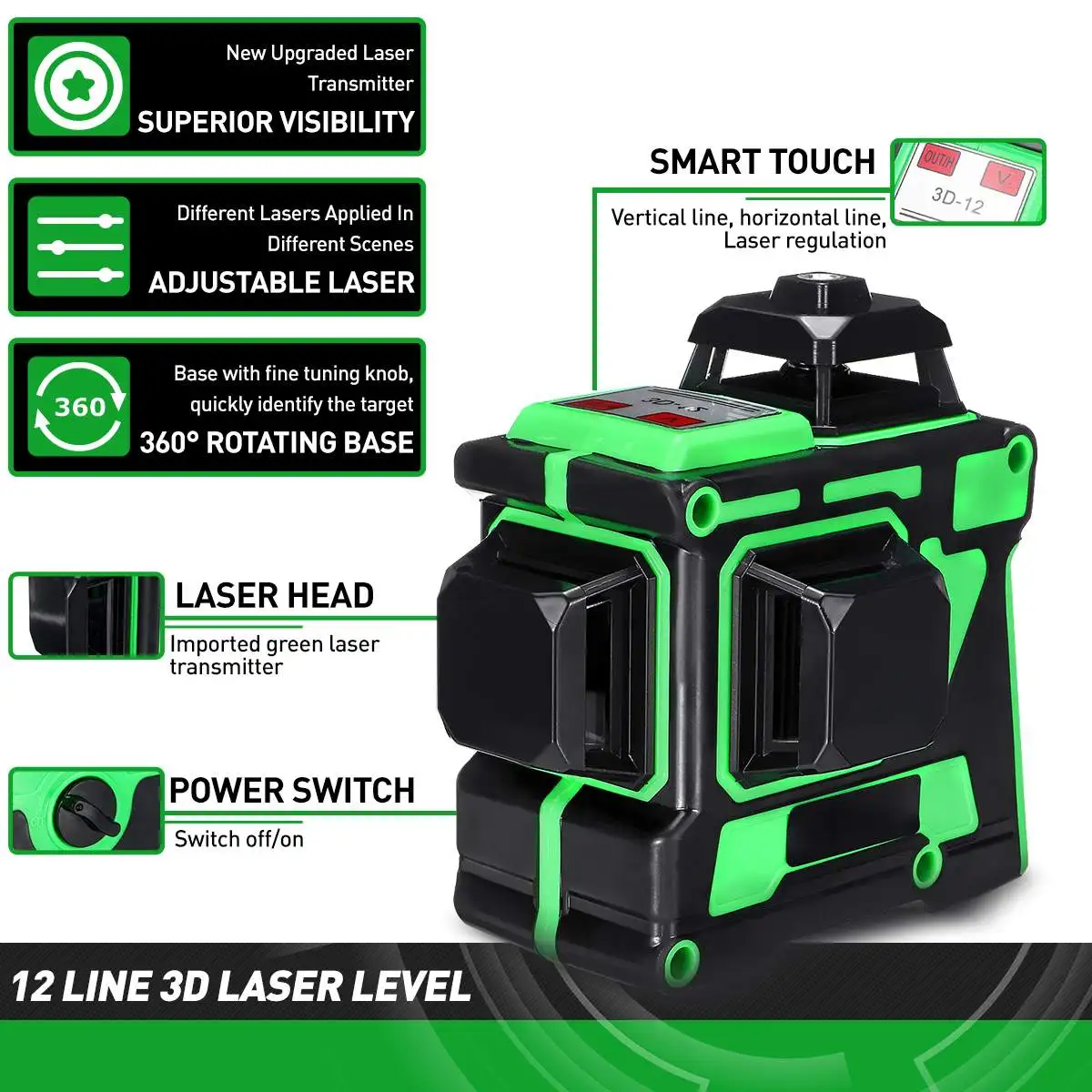 -3D 12 линейный лазерный провод для точного позиционирования.