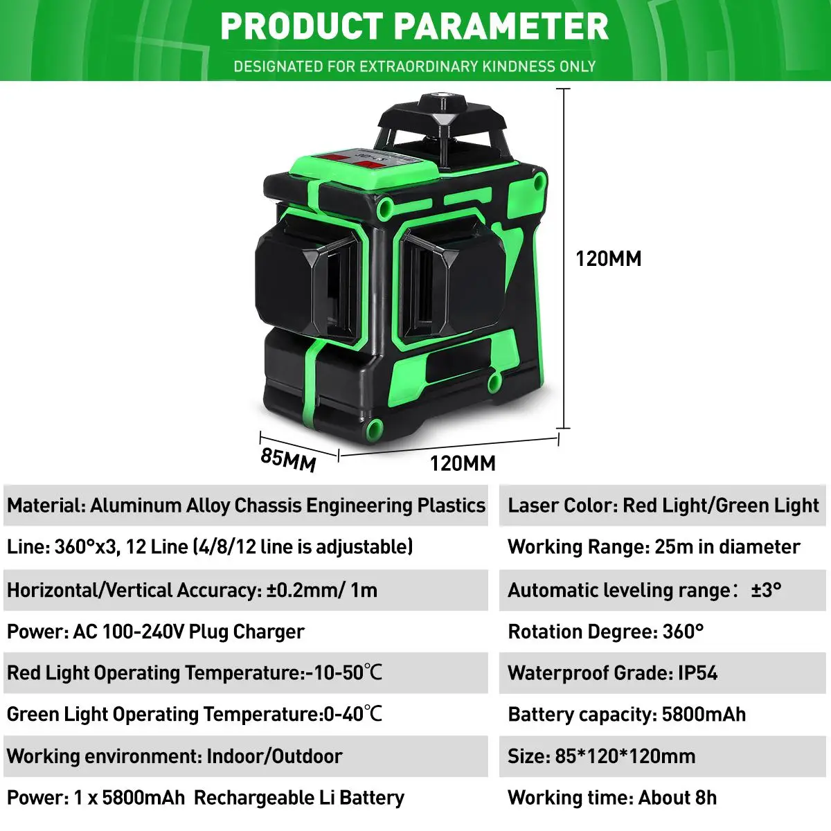 -Линия: 360 ° x3, 12 линий (4/8/12 линия регулируется)