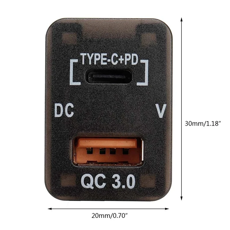 Автомобильное зарядное устройство Type-C + PD QC3.0, двойной USB-адаптер, разъем для приборной панели, Вольтметр для Toyota Camry Landcruiser Prado