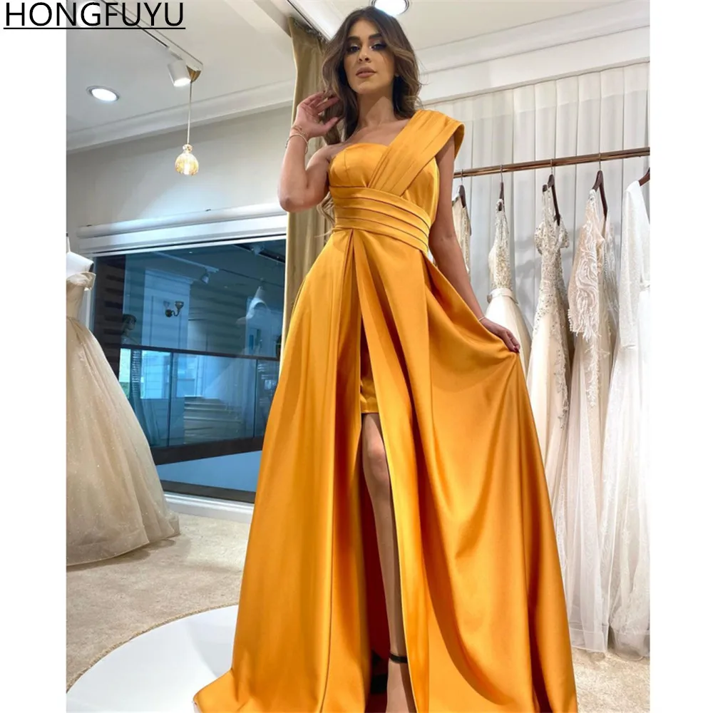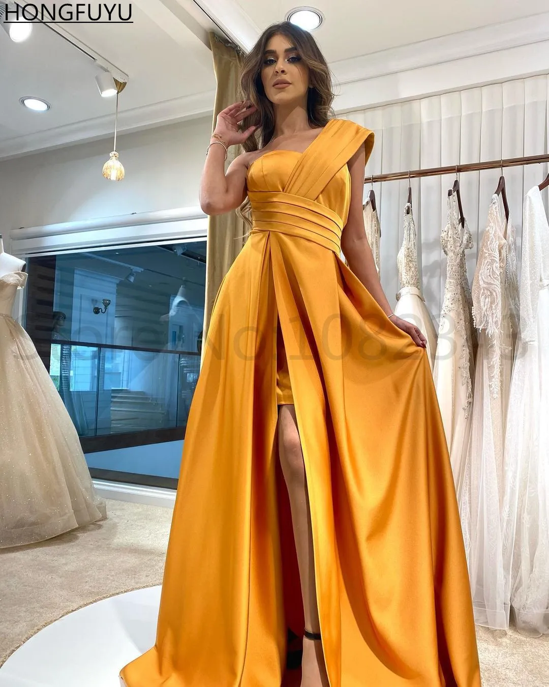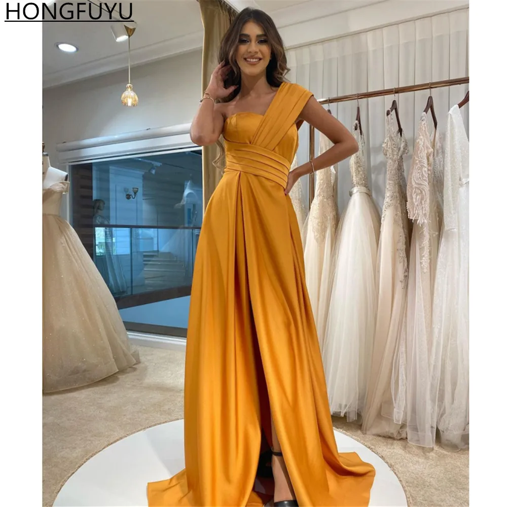 HONGFUYUжелтое платье на одно плечо для выпускного вечера, Вечерние Платья de soire, длинные плиссированные вечерние платья с разрезом спереди, abendkleider