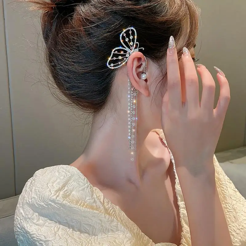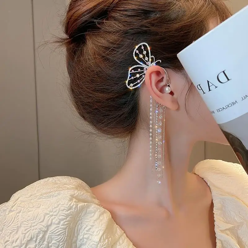 Модные серьги-клипсы с кристаллами в виде бабочки, серьги-каффы, дл...