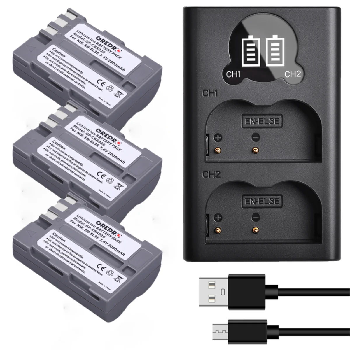 2000 мАч EN-EL3e EN EL3e аккумулятор + зарядное устройство с USB и портом Type-C для Nikon D90 D80 D70 D700 D50 D70s D300s D100 D200 SLR