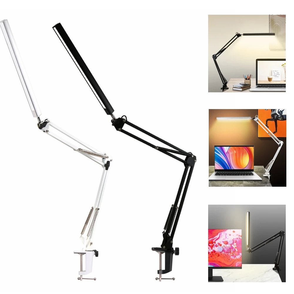 Светодиодная Складная Настольная лампа с защитой глаз и длинной рукояткой, USB офисный Настольный светильник для чтения и учебы, универсальная Настольная лампа с длинной рукояткой и зажимом