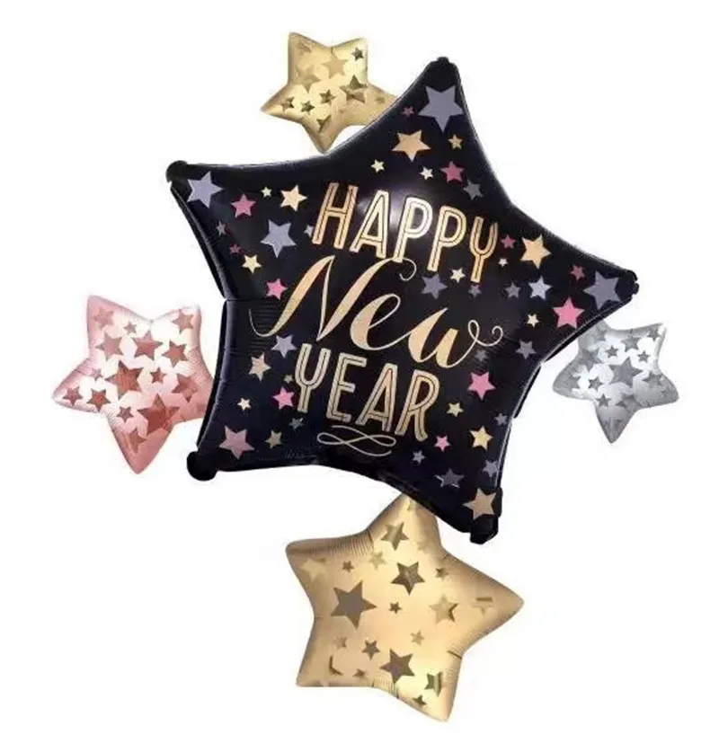 Шары воздушные алюминиевые в форме пентаграммы, с новым годом 2022