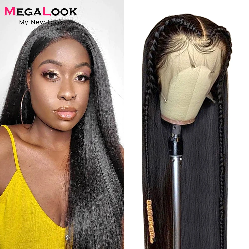 Парик с кружевом спереди для женщин Megalook Remy, бразильские прям...
