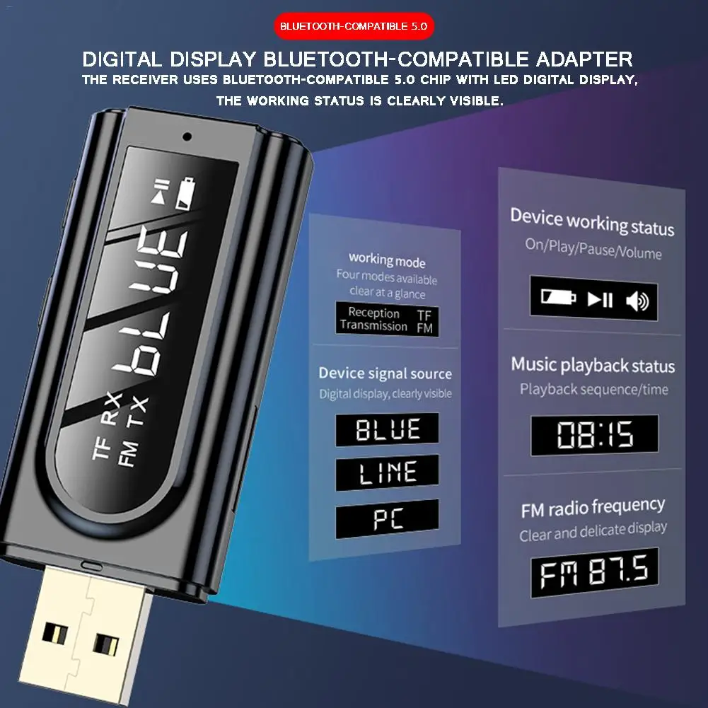 2-в-1 приемник-передатчик Bluetooth 5,0 Автомобильный светодиодный ...