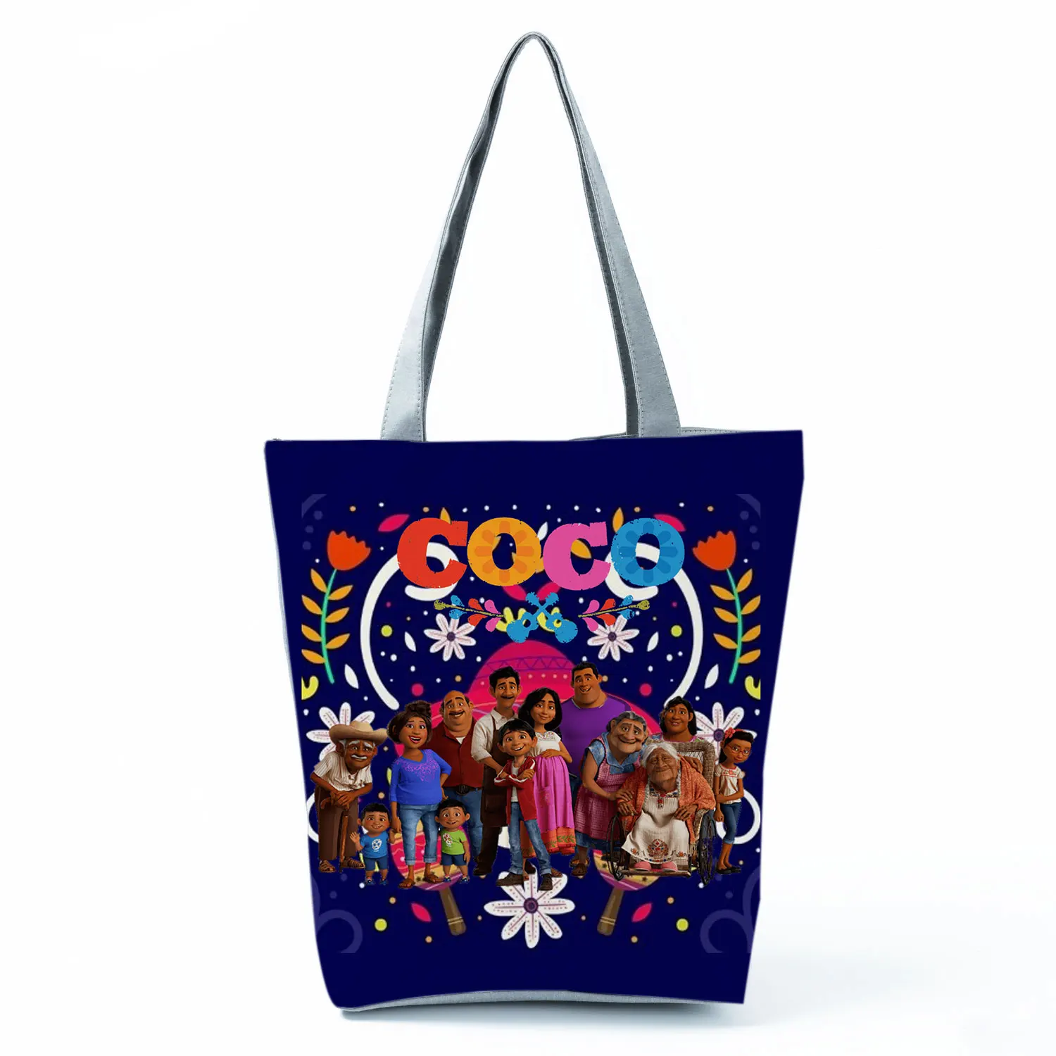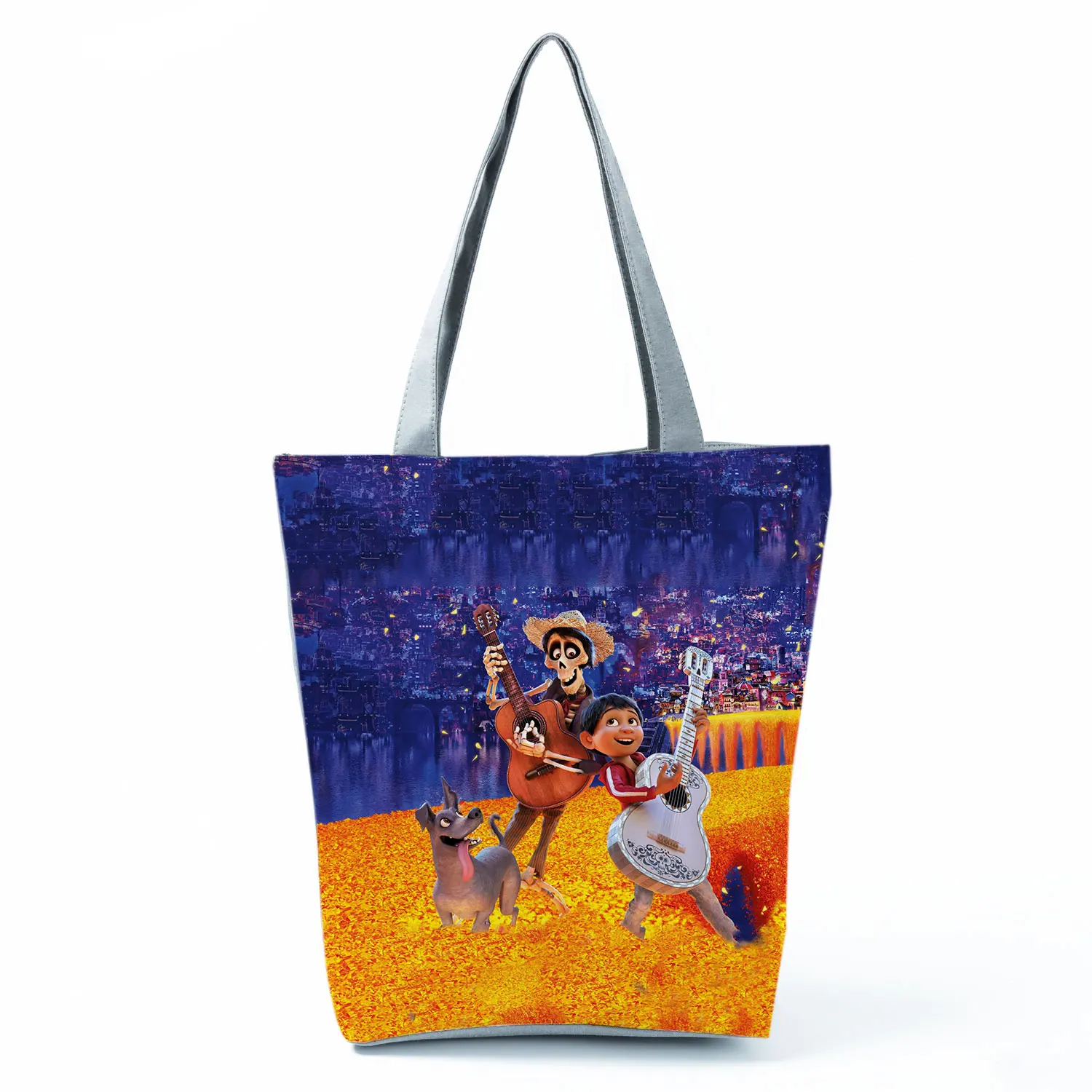 Сумки Disney Coco череп Хэллоуин мультфильм Tote Женская сумка через плечо эко многоразовая сумка для покупок повседневная черная Дорожная пляжная сумка